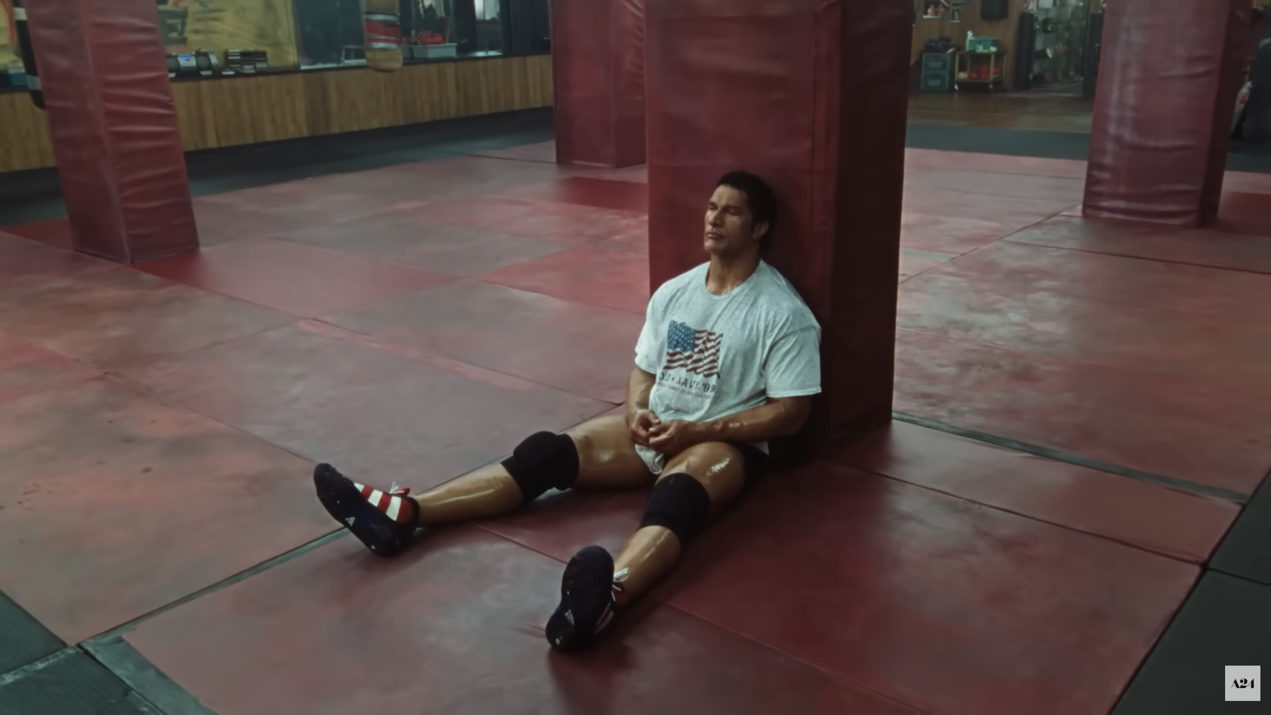Safdie is a talented director known for powerfully portraying chaos, anxiety, and tension. The Smashing Machine opens with a monologue in Kerr’s soft-spoken and gentle voice, juxtaposed with the brutal violence on screen. At first this feels slow and meandering, at times even kind of dull. Much of the film is a slice-of-life story, showing mundane everyday moments, but building to the upcoming drama. That initial stable, slow pace, once lulling and soothing, makes the later chaos and fractures even more pronounced by contrast. Even then, the dramatic bursts are not overblown, they’re shown in short flashes, opting for realism and authenticity rather than theatrics.